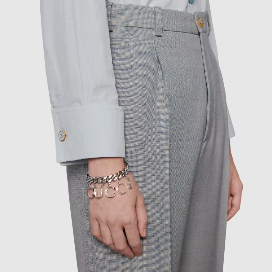 - The script is the main focal point of this gourmette chain necklace crafted from a grey palladium finish